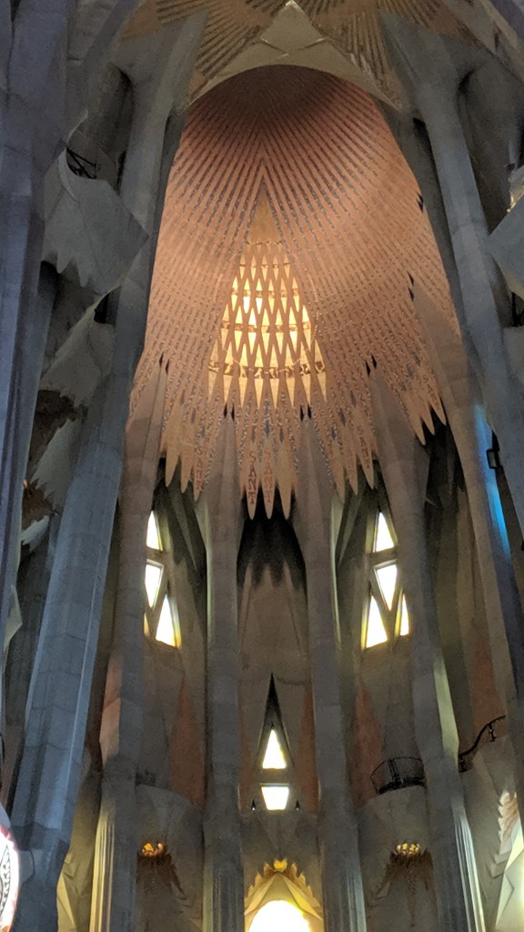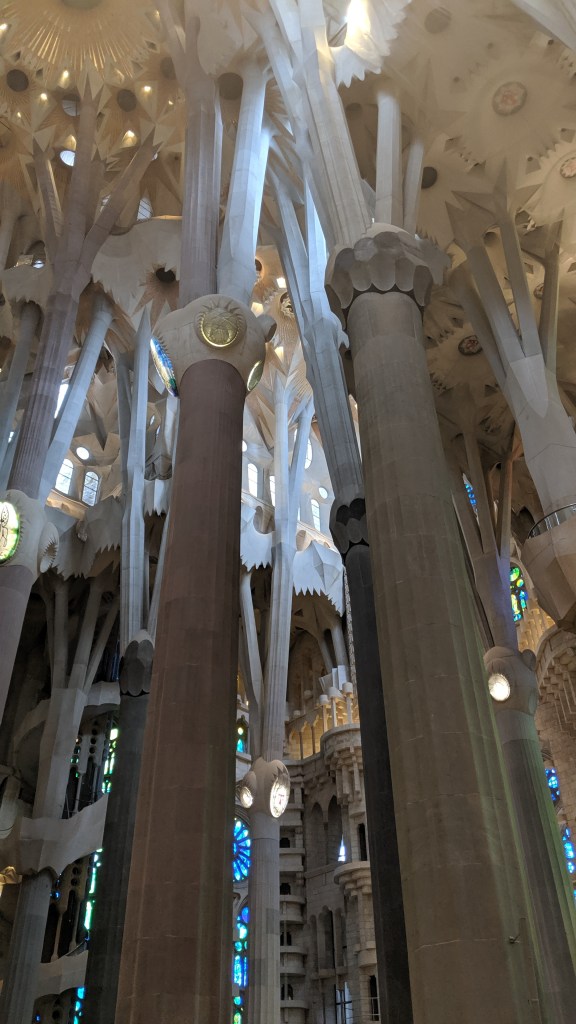 Gaudi, a very devout Roman Catholic, did not design this church for his glory but for God’s, his intention made clear by everything inside the church pointing to the God of Creation. Inspired by the natural world, Gaudi eliminated any straight lines or angles because they don’t appear in nature.