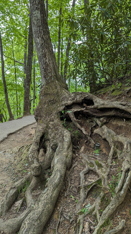 One of my favorite activities is hiking, and one of my favorite objects to observe while hiking is trees. Trees amaze me, from their intricate root systems to the way their limbs design patterns in the winter sky. They symbolize stability, permanence, no matter what season or weather surrounds them. I’m especially taken with the tree pictured here. Note how it has woven itself to the sloped earth, literally “grounded” itself, its roots bare from erosion. Yet the body of the tree continues to rise, to reach, to breath, to live because of its rootedness and the nutrients it receives.